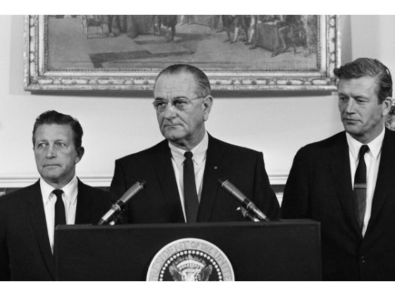 President Johnson, with commissioners Kerner and John Lindsey, 1967