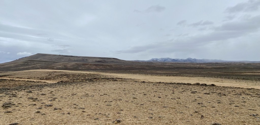 It’s an abstraction to read of characters and their adventures. It feels real to stand on the paths they trod, wagon ruts still visible. To do it on a cold, gray, blustery day with snow threatening and few other travelers on the road is overwhelming. My heart was in my throat as I drove off pavement onto muddy roads to see the spot where the Oregon Trail crosses the Divide (7,411 feet above sea level) in sight of the Twin Mounds; where in 1847 explorer Jim Bridger conferred with Brigham Young about routes to Salt Lake; where in 1846 the Donner Party broke south on a new route to California.