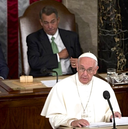 Sitting behind him, Speaker John Boehner took the pope’s message to heart. The next morning, he told the House Republican caucus over which he presides: I’m not up to the job.